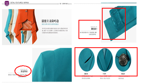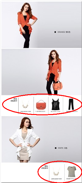 6、接下来就是模特的展示了,很贴心的针对不同的颜色做出了一些搭配的推荐,包括:包包,打底衫的搭配推荐,让客户有足够的想象空间来感受上身的感觉。