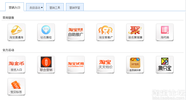 6:我要推广:淘宝官方的营销活动入口和营销工具都在这里可以找到,而且还有营销学堂,许多营销专家在线传授营销技巧,还愁你的店铺做不好吗?http://a.tbcdn.cn/sys/wangwang/smiley/48x48/10.gif