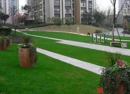 ▲草坪线条不顺,草坪高于园路
