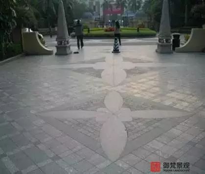 ▲整体平度相当平整,各个花岗石拼花接口处保证了精确的平整度。