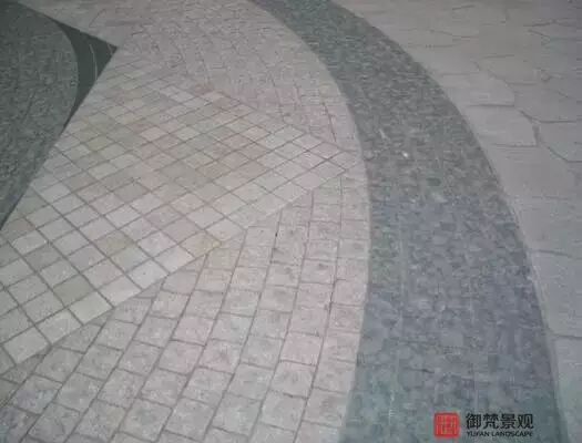 ▲小规格花岗石拼贴十分规整,每个小块同时又构成了视觉整体的效果,自然而规则。