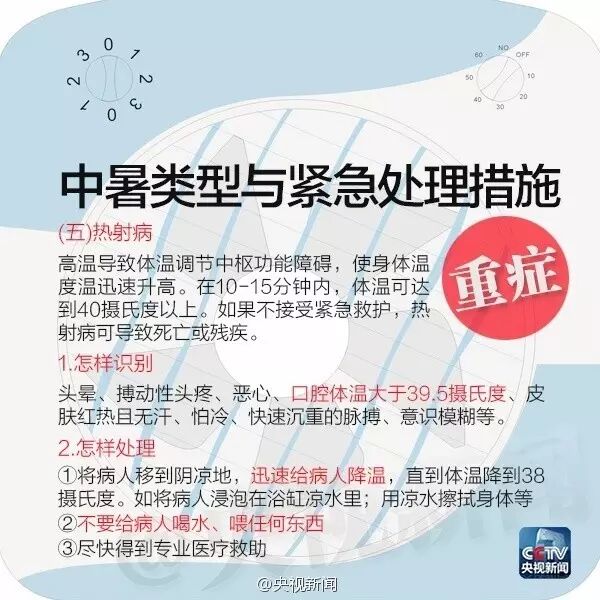 专家还提醒,高温天一定要当心患上热射病。热射病属重度中暑,死亡率50%。近日,江西的一名10岁小孩,在室外玩耍20分钟,患上了热射病,全身出血不止。