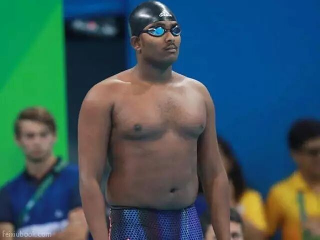 然而,在100米自由泳预赛中,一位“肚腩哥”的乱入,打破了这种画风。