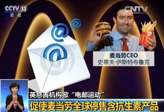 这家机构希望通过消费者电邮引起麦当劳重视,让麦当劳在全球范围内供应的鸡肉、牛肉、猪肉和乳制品中,都不再出现滥用抗生素的问题,而不是仅在美国的麦当劳停用含抗生素的产品。
