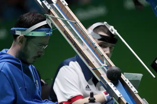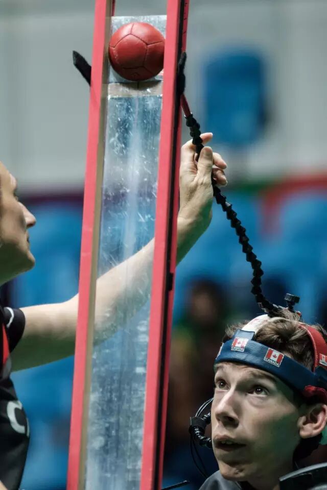 这个项目看着很陌生是不是?这是残奥会的“硬地滚球”项目,运动员要在规定区域内,把自己的球尽量投近目标球(白色球),最接近目标球的一方获胜。重度残障的硬地滚球运动员需要头戴电动仪器,帮助他们判断目标球的位置,此外,运动员还需要一个导航轨道帮助他们投球,他们动作极为缓慢,需要裁判、观众、协助者极大的耐心。
