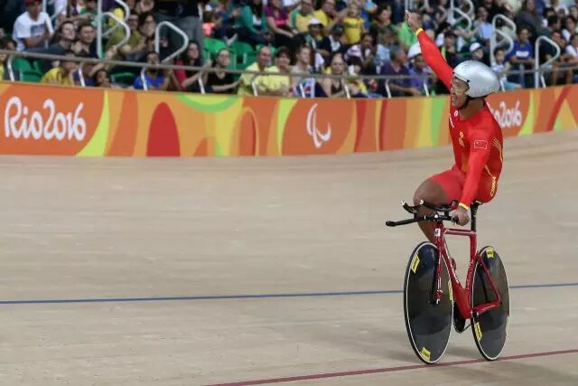 中国“单腿骑士”梁贵华。4岁时由于意外左腿肢体残疾,凭着顽强的毅力和不服输的精神,梁贵华学会了游泳和骑自行车。在17岁被教练选中参加残疾人体育运动,18岁开始学习专业自行车。2012伦敦残奥会梁贵华打破世界纪录获得金牌,里约再次卫冕。“我们不能改变命运给我们的不幸,但是我们可以改变对生活的态度,积极一点,乐观一点,其实生活的路可以更宽广。我只有一条腿,但是我与你们一样,坚强地站着。”