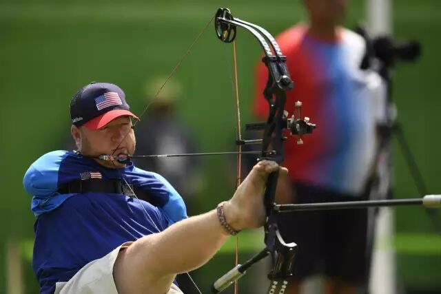 美国无臂”神箭手“马修·斯图茨曼,这是他在用自己的方式拉弓射箭。他自小失去双臂,但是从来不允许自己身体上的残疾成为自己不思进取的理由,反而他比常人多付出了几倍的努力来正常生活。他可以用脚来完成一切,吃饭,穿衣,刷牙,洗脸,甚至拉弓,射箭。“我的脚就是我的手,所以我能像别人使用双手一样灵活使用我的双脚,而我的腿是我身体最强壮的部分。”