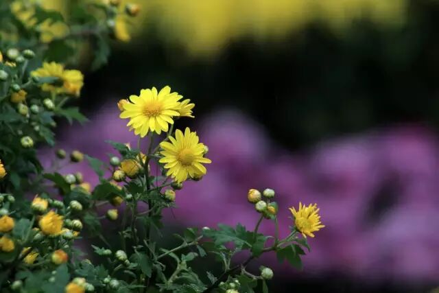 五行中,秋天是金,金风四起,金土之应,所以菊黄为上。天玄地黄,土地本色,黄为正。土地生长之物,每年都以初春萌发嫩黄始,到晚秋萎黄落叶归根。菊黄之灿烂,正因早植晚发,它类萎黄衰败,它却能借金水之精,开出最灿烂之花。菊黄于是就在清朗背景里变成最夺目之色。不仅古时王后六服中颜色最漂亮的鞠衣,就取这菊黄,汉武帝时,见黄鹄下建章宫,作歌"金为衣兮菊为裳",所以它也是皇袍的颜色。