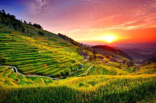 当地苗族百姓的杰作依山而开,随山势地形的变化呈现出不同的秀丽线条