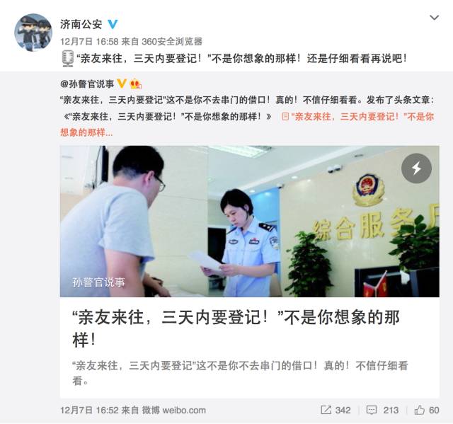 消息一出,网上立刻炸开了锅。好多人都在担心,今年寒假还能不能好好回家了,是不是串个门可能要被抓起来?当留言评论几乎要沦陷之际,昨天傍晚,济南公安官方微博回应了:这事不是你想象的那样!
