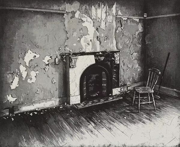 在一间墙壁斑驳的无人房屋里,冰冷的壁炉前一把孤单的椅子,仅此而已,这仿佛是一个电影的开始,即将倒叙一段不同寻常的往事,我想,这就是诗与画的结合给我的想象,而如今,当我再唱起这首歌时,脑海里一定会浮现出这幅画的。