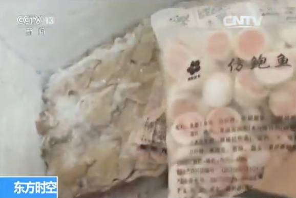 记者在汉丽轩烤肉店的仓库内发现,所谓的“鲍鱼”是仿鲍鱼,包装袋配料显示,这种仿鲍鱼是用鱼肉、猪肉、鸡肉,再添加各种食品添加剂、香精制作而成。