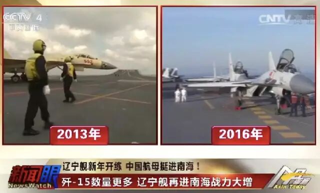 实际上,早在2013年年底,辽宁舰就曾在南海活动过,三年来,航母编队可以说发生了天翻地覆的变化:最显而易见的就是:三年前,歼-15舰载机还远远没有形成战斗力;但三年后,歼-15已经停满了辽宁舰的甲板,舰载机成功地担负起了整个编队的防空和攻击任务。