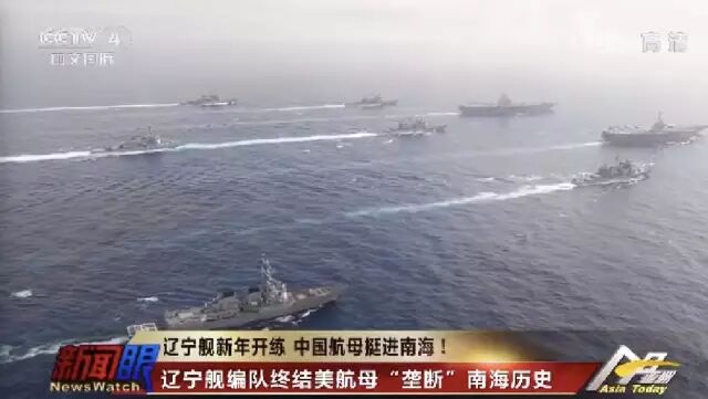 新年第一天,辽宁舰与数艘驱逐舰组成的编队,携带多架歼-15舰载战斗机和多型舰载直升机,在南海海域进行了紧张的训练。此前,航母编队连续跨越渤海、黄海、东海等海域,经宫古海峡穿越第一岛链进入西太平洋;随后绕过台湾岛东部和南部,进入南海。