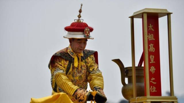 别看演出只是半个小时,细算起来也就是跪10次,磕30个头的事儿,但为了这个老齐请教了不少专家也学了不少相关的历史,用他的话说,没这些东西垫底儿怕镇不住这身龙袍。