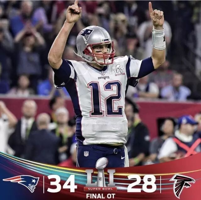 随即进入加时赛,这也是51届超级碗以来的第一个加时赛。加时赛爱国者队又幸运地拿到了球权,完成致命一击,实现超级逆转,这也被称为北美体育史上最伟大的逆转。
