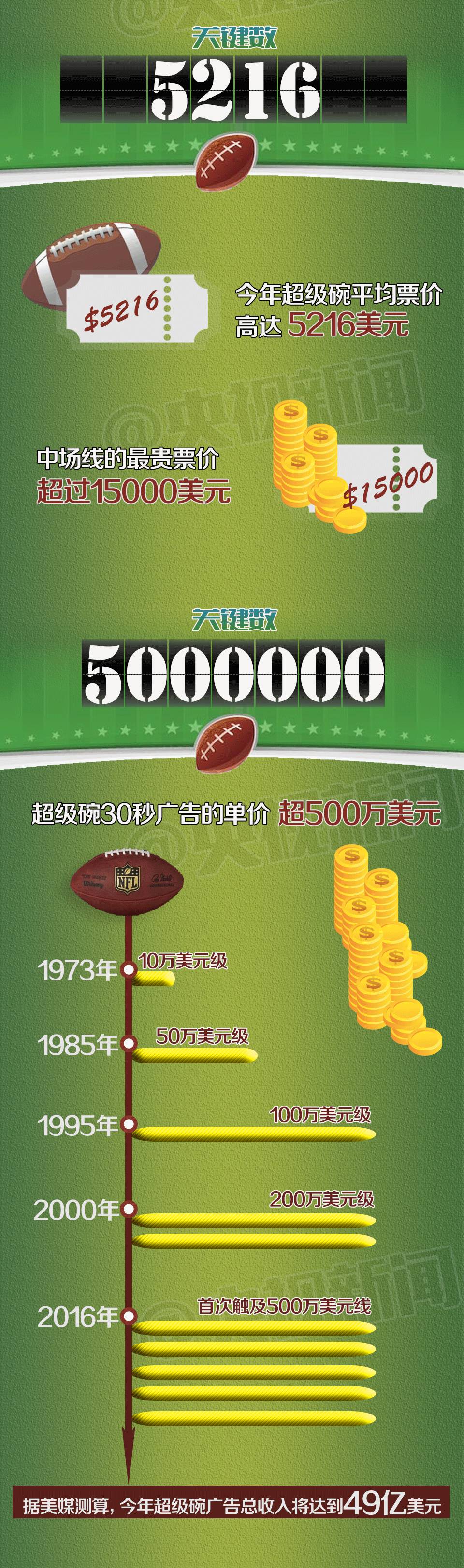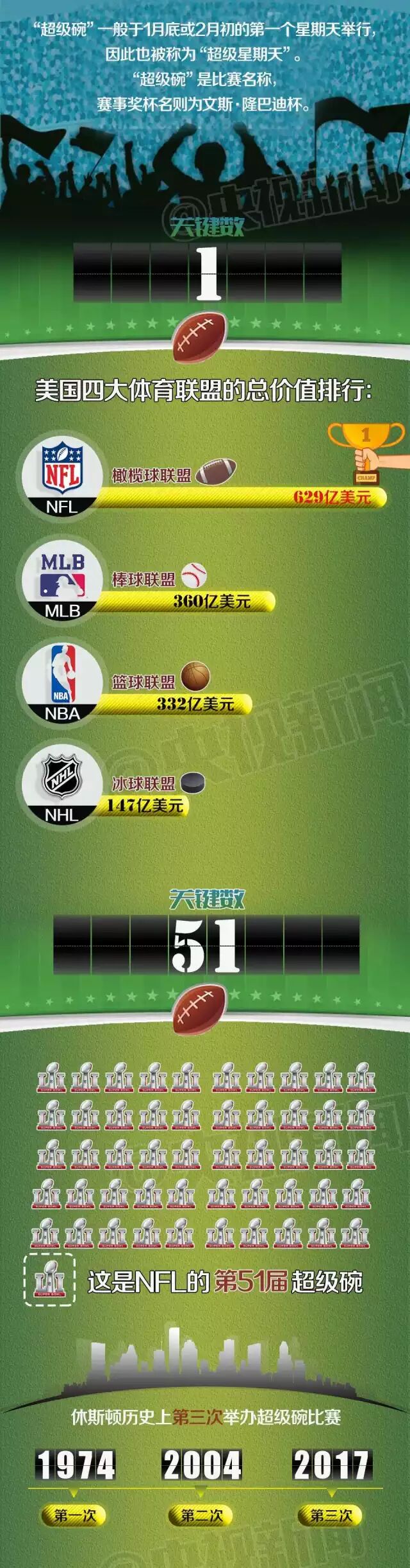 其实,国内大多数人对“超级碗”知之甚少,下面不妨通过以下几组数字了解一下2017“超级碗”。