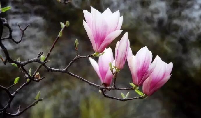 仲春二月花是由浅淡渐浓的一个过程,第一声春雷响过,桃就要绽蕾了。但在桃之前,抢先开花的是迎春与玉兰。