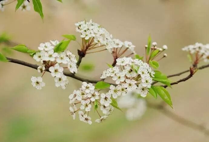 也叫豆梨,多年生蔷薇科梨属落叶乔木,别名鹿梨、棠梨、野梨、鸟梨等,原产我国华东、华南各地至越南。常野生于温暖潮湿的山坡、沼地、杂木林中。伞形总状花序,具花6-12朵,直径4-6毫米,总花梗和花梗均无毛,花梗长1.5-3厘米米;梨果球形,直径约1厘米,黑褐色,有斑点。