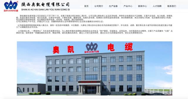 根据奥凯电缆的官网显示,该公司注册成立于2012年11月,主要从事各类工业及民用电缆、特种专业电缆的生产及销售。奥凯电缆公司负责人表示,西安地铁三号线电缆项目是该公司第一单生意。
