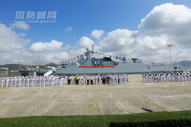 3月31日上午,海军新型护卫舰六盘水舰入列命名授旗仪式在海南三亚某军港举行,标志着该舰正式加入人民海军战斗序列。