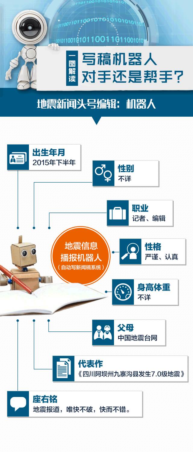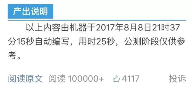 然而,最先发布该消息的是一个写稿机器人,它用25秒写完了关于这次地震的速报,通过中国地震台网官方微信平台推送,全球首发。