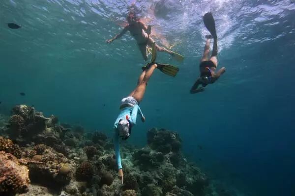 可靠的专家或是海洋生物学家带领你驶向海湾中最迷人的浮潜目的地,二十多个30米深的潜水地,在12米深处满是色彩斑斓的茂密珊瑚。经验丰富的潜水员带你探索水下世界,观赏蓝斑魟鱼、神仙鱼、黄线雀鲷、甜嘴鱼、海鳗、海龟等形形色色的海底生物。