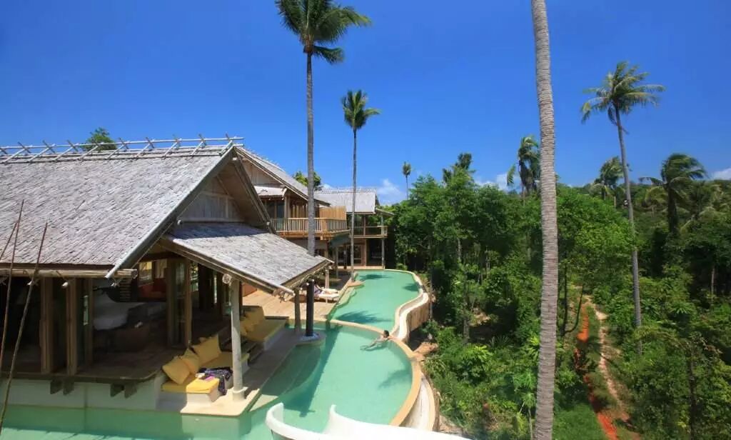 2、另类奢华的沽岛度假村Soneva Kiri,占地150英亩,却只有35间全部带泳池的别墅,每间别墅都被丛丛树林隔断开,私密性超高。