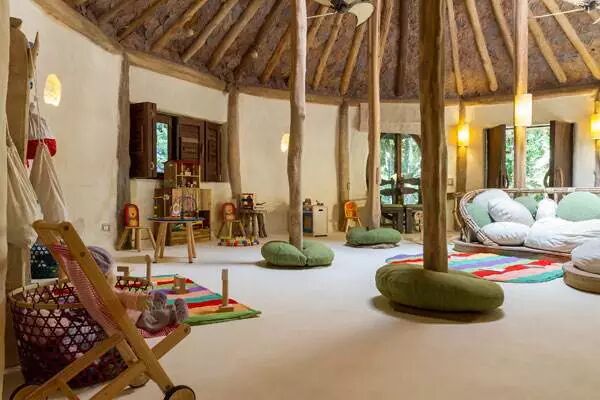 除了设计独到,寓教于乐是这里的主题。里面设美术室、音乐室、时装室及图书馆。专业的儿童指导师会激发孩子的想象,教他们演奏泰国乐器,让他们在绘画和视觉艺术中绽放创造力。同时酒店为1-5岁儿童特别推出“勇敢探索者俱乐部”,配备顶级的专业儿童看护人员,孩子们可以在“生态儿童乐园”中尽情玩乐,玩累了,就在旁边的躺椅上睡上一觉。还有一系列远足和文化交流项目,雨林漫步,拜访当地学校,野餐和儿童烹饪课堂都是酒店的特色。
