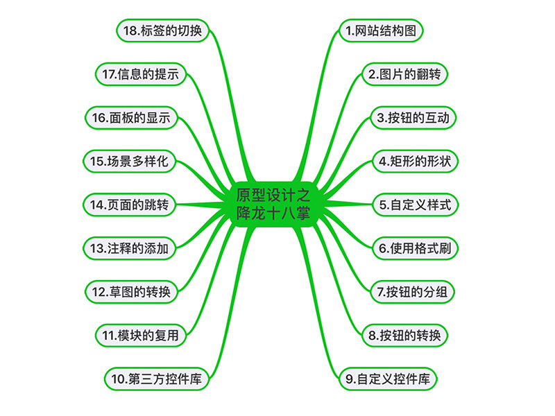 翻开降龙十八掌的思维导图,第一次初见这张图还很陌生,现在能逐一说清是什么。对每一个操作进行再次练习,发散到这段时间哪些工作用到其中的招式。彼此都发现,在原型设计的和绘画的过程中,不自觉地用到了这些招式,也是原型设计离不开的环节。
