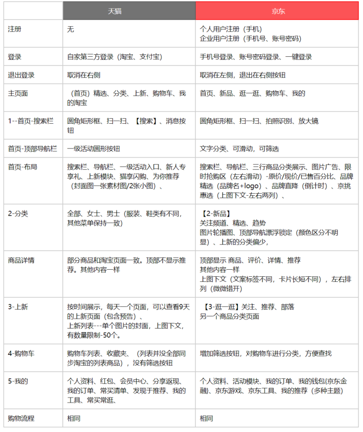 讨论二:对比两个产品之间的差异。eg:天猫VS京东