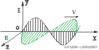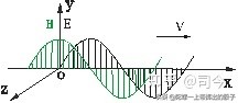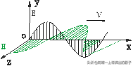 这里,金属导线电流会产生环形闭合磁场,而这个磁场方向与电容器电场方向并不在一个平面,而是相互垂直,即H⊥E,而且导线电流越大,环形磁场越强,即电场与磁场强度变化的相位差为0或π,这就是我们教科书经常给出的电磁波图形,如图-15所示。