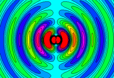不过,这里要注意:LC振动只能发射无线电波,红外线、可见光、紫外线都是由炽热物体、气体放电或其他光源激发分子或原子等微观客体所产生的电磁辐射,x射线是用高速电子流轰击原子中的内层电子而产生的电磁辐射,γ射线是由放射性原子衰变时发出的电磁辐射或用高能粒子与原子核碰撞所产生的电磁辐射;我们之所以要强调这一点,是因为这些超短波辐射都可以用偶极振子模型给予描述的,并且这种描述是量子力学建立之根。