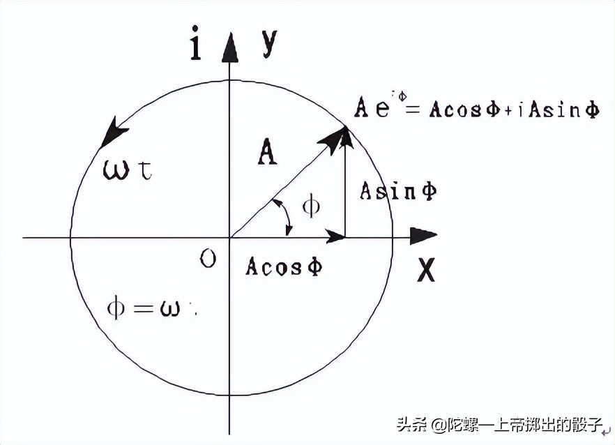 旋转矢量圆是研究谐振动的一种比较直观的方法,可以避免一些繁琐的计算,在分析谐振动及其合成时常常用到,但必须指出,旋转矢量本身并不做谐振动,而是旋转矢量端点的投影点在做谐振动;因此,一维矢量旋转也常被放在复平面上用复数来描述,如图-3所示,y=Acos(ωt+φ)+iAsin(ωt+φ),其实部为实数简谐振动,也是真实的简谐振动,虚部为辅助量,不是真实的简谐振动,但它与真实的简谐振动相位差为π/2,写成欧拉三角函数形式就是