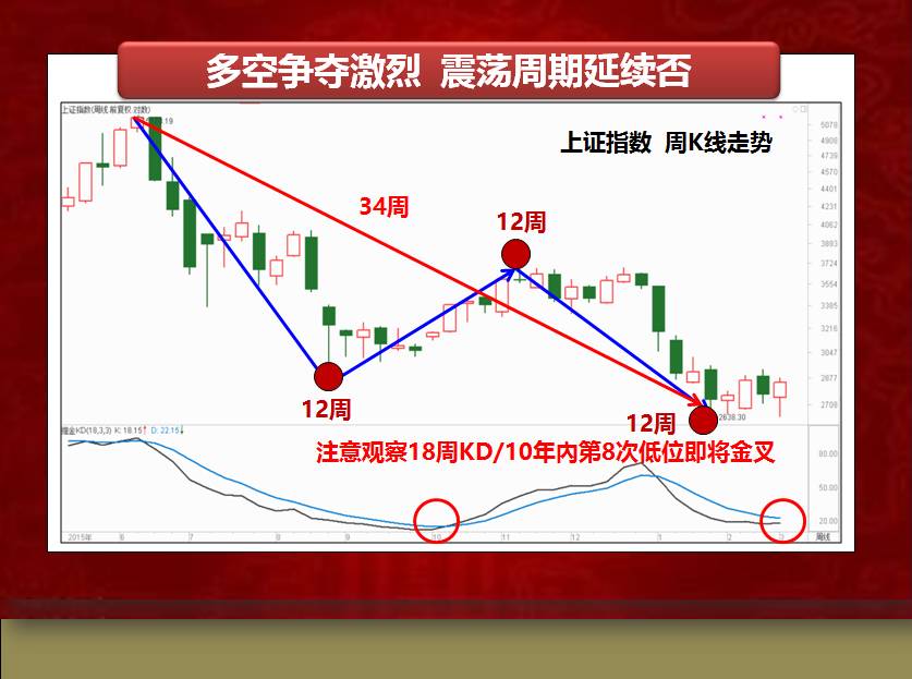 综合而言,财富课张润林通过时间周期+当前市场表现来研判,注意观察18周KD的变化,18周KD/10年內第8次超卖区即将金叉,一旦形成,短线反弹,中线小牛市即将诞生 。在市场趋势没有确立前,超卖区18周KD没有有效形成前,不可盲目追涨杀跌,采用敌进我退,敌退我进的策略做好差价是不二的选择。良师益友,财富课堂再次在这里提醒各位亲爱的投资朋友们,上方压力不轻,请注意仓位,宁待趋势明朗,也不可盲目重仓赌博。