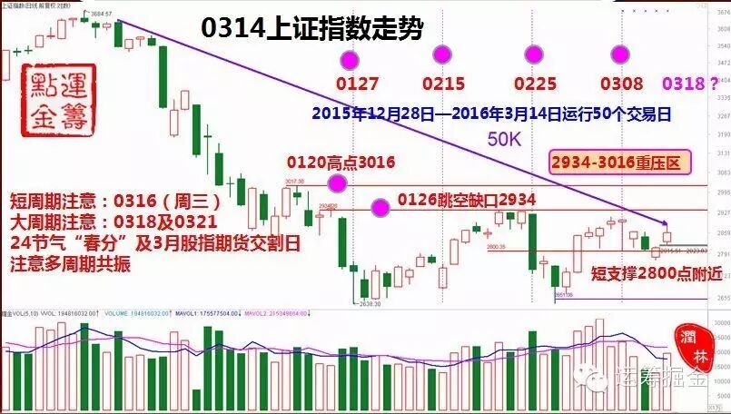 成 交量方面,两市昨日明显放量,沪市成交3282.41亿元,深市成交4889.43亿元,两市共成交8171.84亿元,较上一交易日大幅增量近2500 亿,其中沪指较昨日增量近50%。量能快速增长确实有点意外,但在整个时间周期而言,还是预料之中的,财富课堂张润林连续两周以来一直反复强调,重要时间 窗口3月18日及3月21日,以下为3月14日微信中发出的原图:
