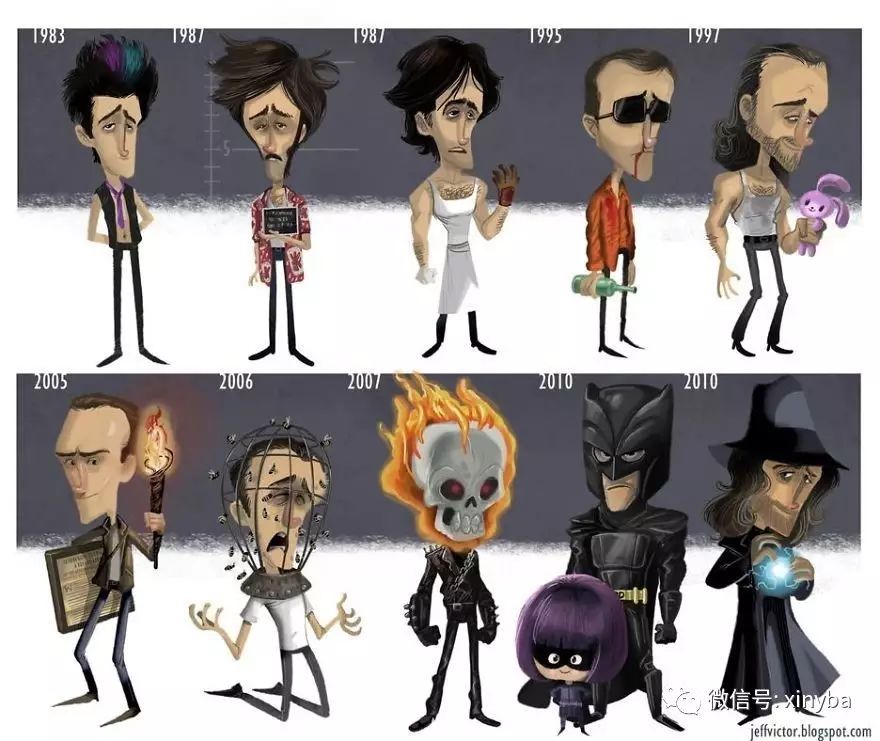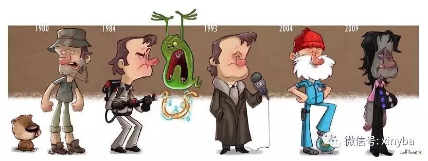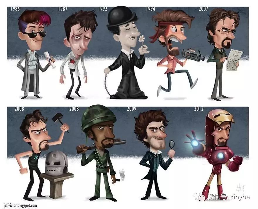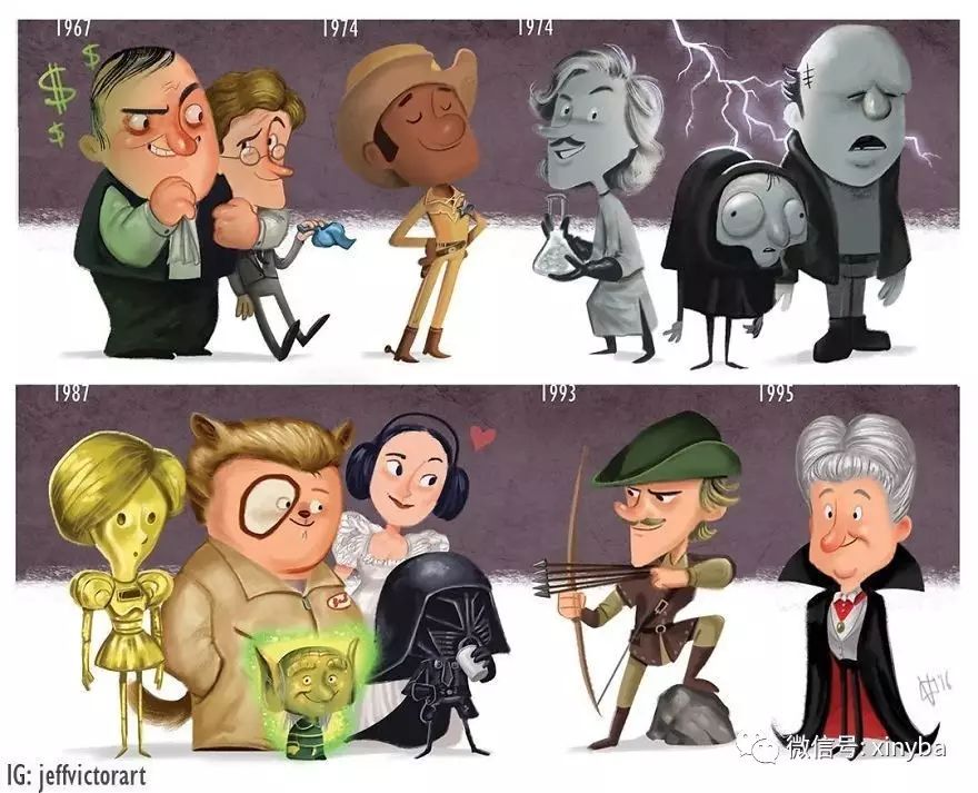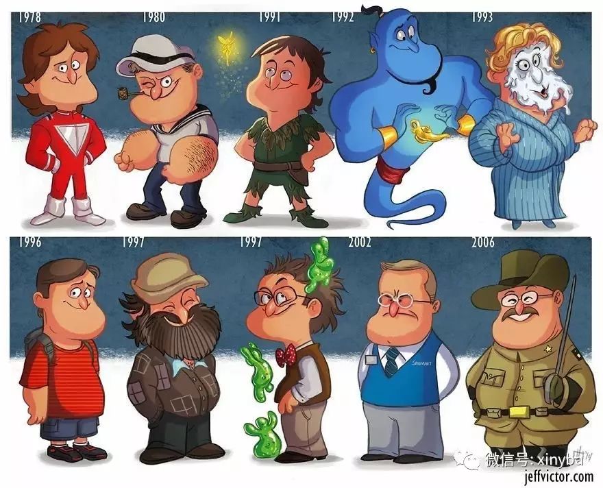 这位加州的插画家Jeff Victor把有名的卡通人物跟演员的“演变史”都画出来啦!让我们来欣赏一下吧!