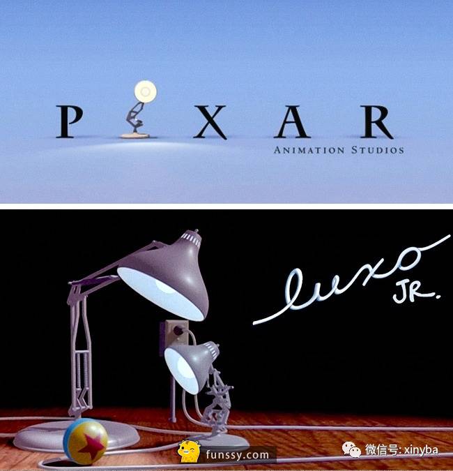 动画公司皮克斯的logo台灯也是源自于自家的经典动画短片-顽皮跳跳灯(Luxo Jr.)。