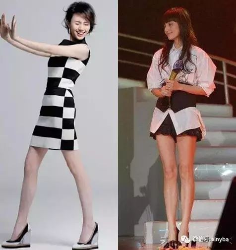 单看莫文蔚的腿会觉得有点偏细,但是她的细却并非皮包骨头的细,而是线条流畅、优美而圆润的细,整体很匀称。因为她整个人的身形就是清瘦修长的,头也很小,所以这样粗细的腿配她的上半身,那是相当的和谐。
