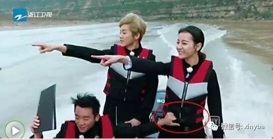 迪丽热巴跟鹿晗神同步指向一个方向,郑凯紧紧抓迪丽热巴的腰带。好像为了是防止热巴摔下去,真暖心!