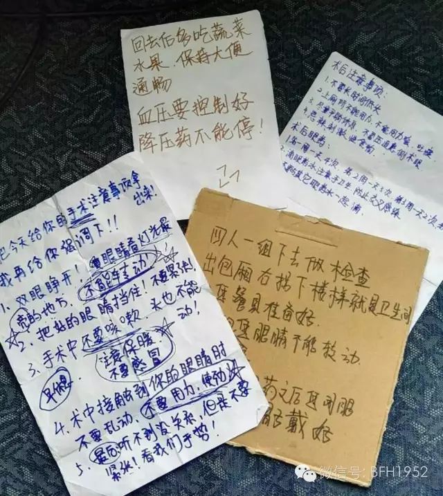 由于老人病情拖得比较久,我们预计手术过程会非常艰难。大家集思广益,决定试试把术前、术中和术后的交待病情、注意事项全部用笔写出来,把字写得大大的。黄映湘医务主任、洪慧副主任医师以及病房护士长王薇也反复和大爷沟通。进了手术室,手术室护士长刘冰也特别照顾大爷,手里仍旧拿着大大的写满了大字的纸板。