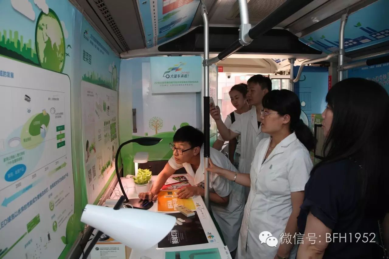 为宣传节能低碳环保知识,倡导绿色的生活方式,促进北京市“十三五”节能减排目标实现,6月3日由北京市发改委和医管局共同组织举办的“节能环保低碳大篷车”系列巡游活动在北京友谊医院举行。上午10点,大篷车准时开进医院,医护人员和候诊患者一同登上大篷车进行了体验。