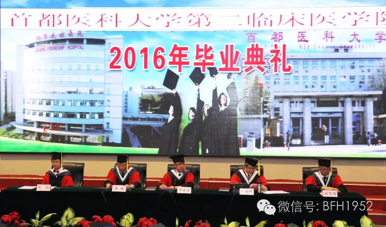6月23日下午,北京友谊医院2016年毕业典礼暨学位授予仪式在门诊楼二层报告厅隆重举行。医院党委书记、理事长、第二临床医学院院长辛有清教授,执行院长、学位委员会主席张澍田教授,党委副书记张建教授,副院长谢苗荣教授出席了仪式。毕业生导师及全体七年制学生、研究生、国际学院留学生参加了典礼。仪式由院长助理兼科研处处长尤红教授主持。