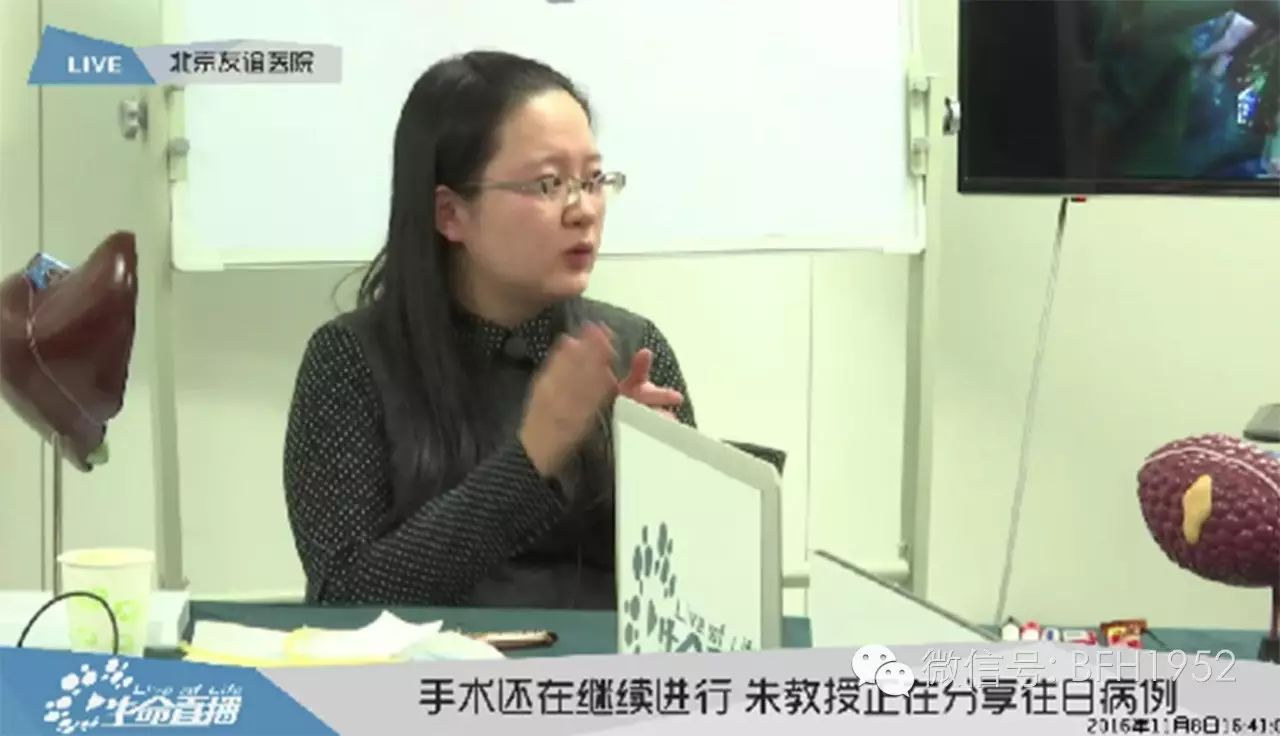 16:40,朱志军主任走下手术台来到直播间。此时,一位来自天津的女孩进入了直播间,原来她是12年前朱志军做过肝移植手术的患者。她现在身体状况不错,并且已经是一位在读博士了。朱志军了解了她的现状,也衷心为她感到高兴。