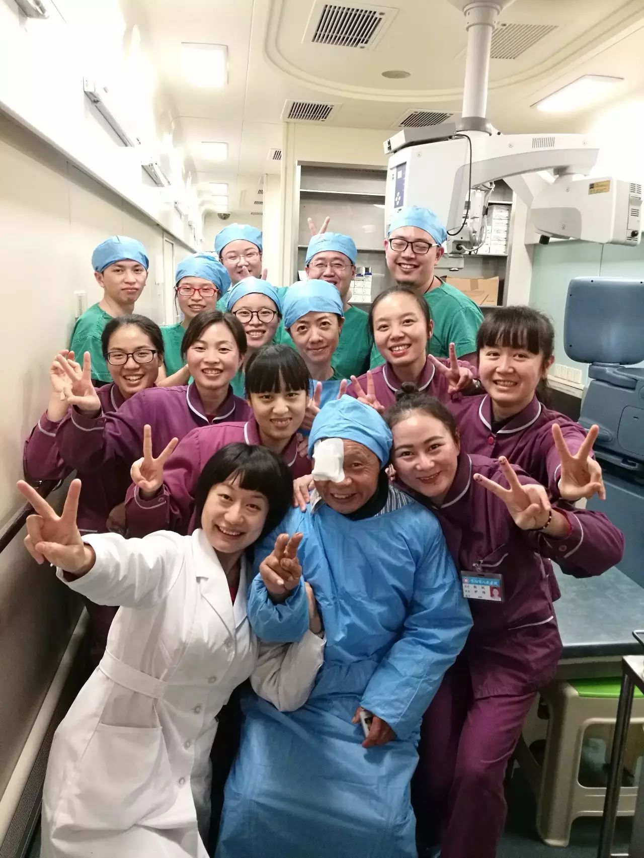 尽管困难重重,最终,我们凭借着过硬的技术,成功地完成了手术。第二天视力恢复到0.4。当她看到医务人员和病友们的面孔,感受到他们真诚的祝福,奶奶激动地说不出话来,紧紧地握着大家的手,久久不愿松开。真心地希望她晚年幸福安康,能感受到温暖与关爱!