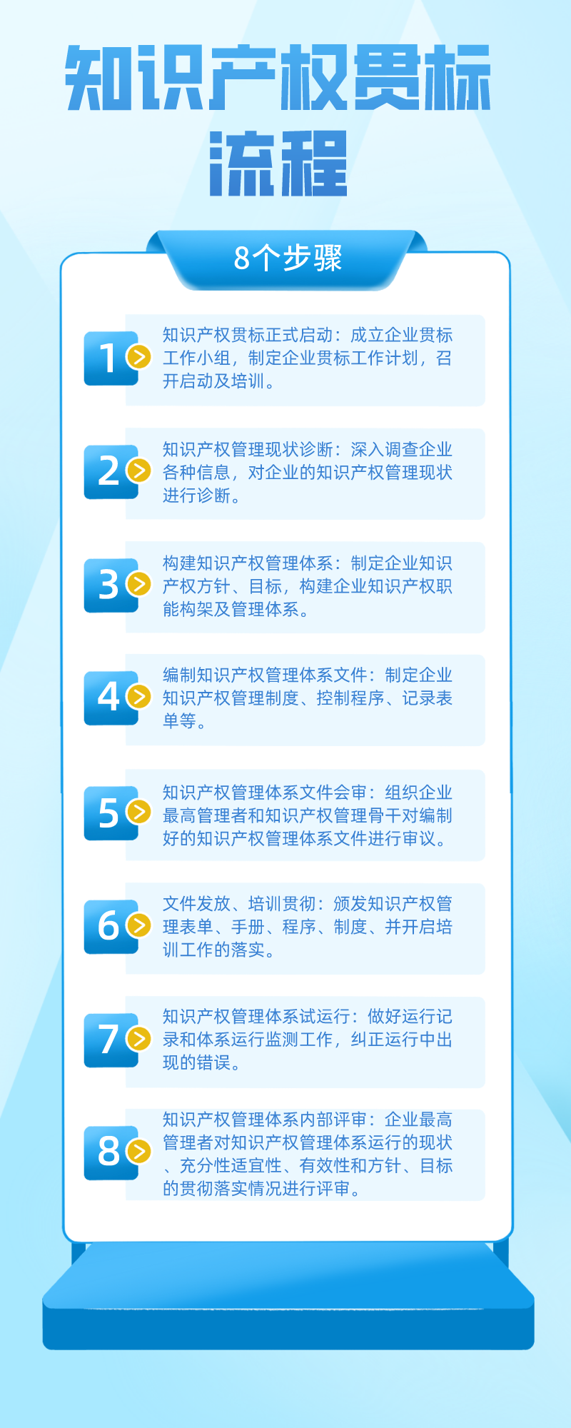 知识产权贯标的目的为建立企业知识产权工作的规范体系,认真贯彻落实《国家知识产权战略纲要》,加强对企业知识产权工作的引导,指导和帮助企业进一步强化知识产权创造、运用、管理和保护,增强自主创新能力,实现对知识产权的科学管理和战略运用,提高国际、国内市场竞争能力。