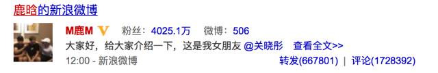 昨天微博爆炸新闻:鹿晗和关晓彤公布恋情!