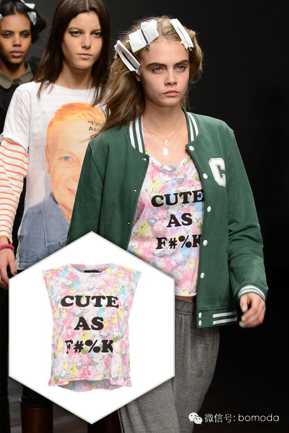 Miley Cyrus绝对是改写了音乐届时尚界历史的人,无数的人都成为了她的粉丝。Cara Delevingne这件Twerking is Not A Crime短上衣不正是挺麦莉的表现么?看着闪亮亮的下眼线,应该是今年春季Chanel高定秀场后被拍到的!