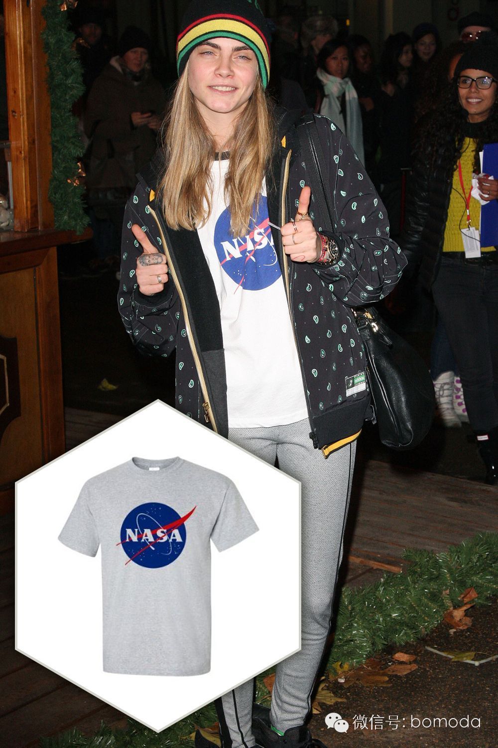 也许Cara不是一个严格意义上来说的书呆子学霸,但是她有一颗向往的心!这件美国宇航局NASA标注的白色T恤,让科学严谨也变得cool感十足!