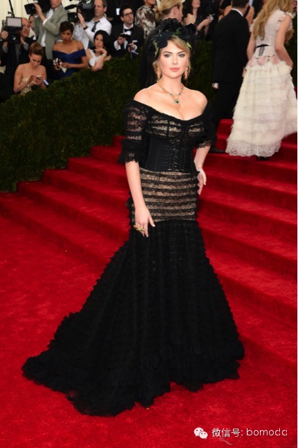 13. 当然每年Met Gala怎么能少了雷点,这不Kate Upton这件黑色蕾丝设计Dolce & Gabbana就将媒体雷了个里郊外嫩。虽然说身材过于丰满不是你的错,但穿的像个酒桶就是你的不对!平日里的街拍好品味都去哪了?